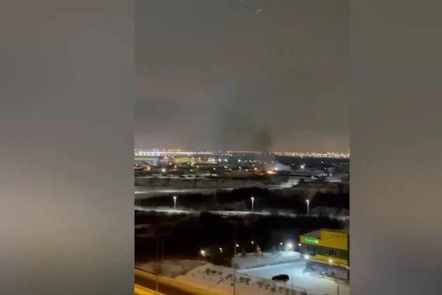Новый пожар вспыхнул в Шушарах недалеко от сгоревшего склада Wildberries. Видео © T.me / "Петербург с огоньком"