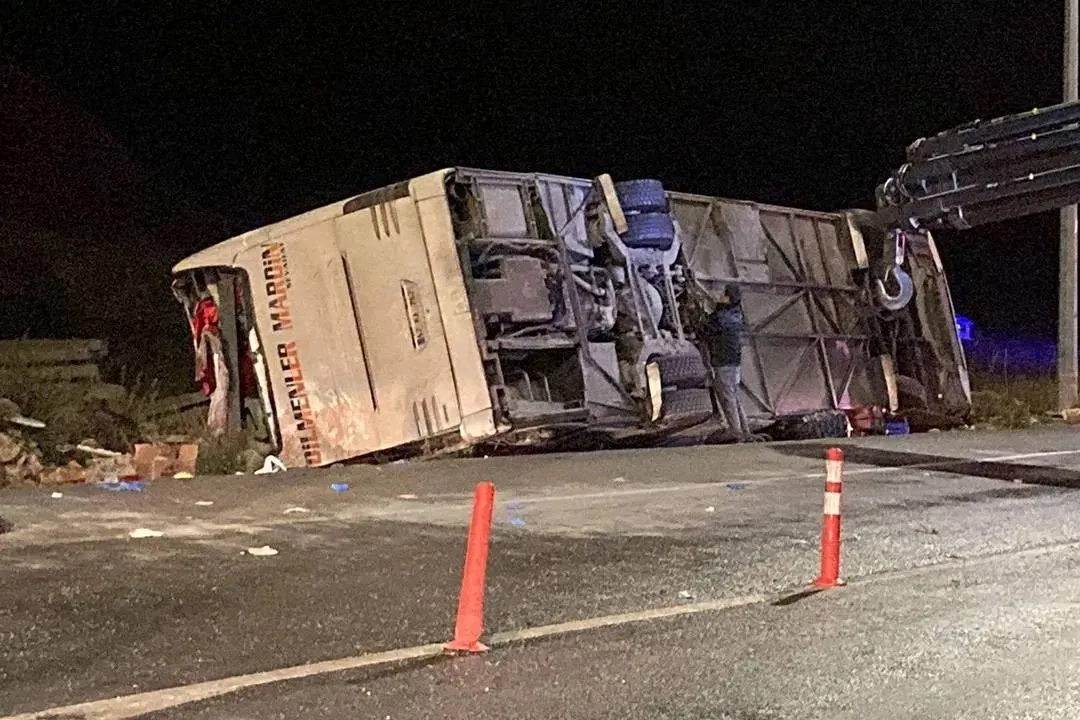 Автобус передвигался по маршруту Анталья – Мерсин. На выезде из туннелей Сарыер в районе Айдынчык он влетел в ограждение и перевернулся. Причины происшествия устанавливаются.