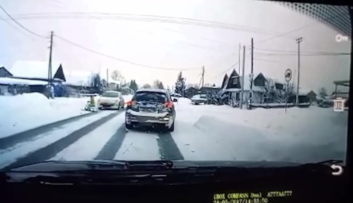 На Урале мужчина едва не запустил ребёнка на снегокате под проезжающее авто