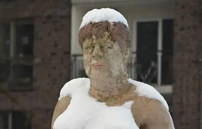 Статуя с лицом Меркель в Гамбурге. Обложка © X / TobiAyodele