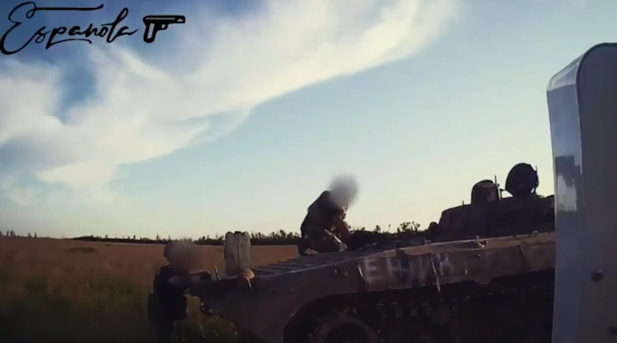Угон украинской БМП у Клещеевки. Видео © t.me / Española | Военная организация "Эспаньола". ОФ.