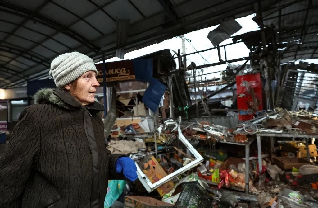 Россия. ДНР. Донецк. Мужчина на территории рынка "Меркурий" после обстрела. Фото © ТАСС / Дмитрий Ягодкин