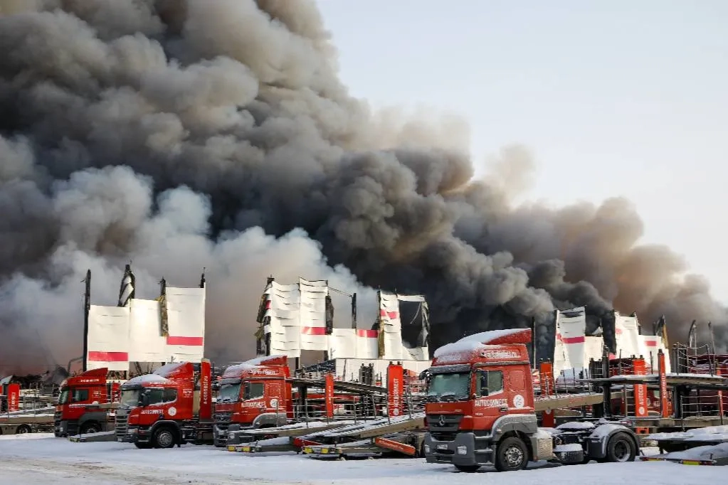 Последствия пожара на складе Wildberries в Шушарах в Петербурге. Видео © Telegram / Следком