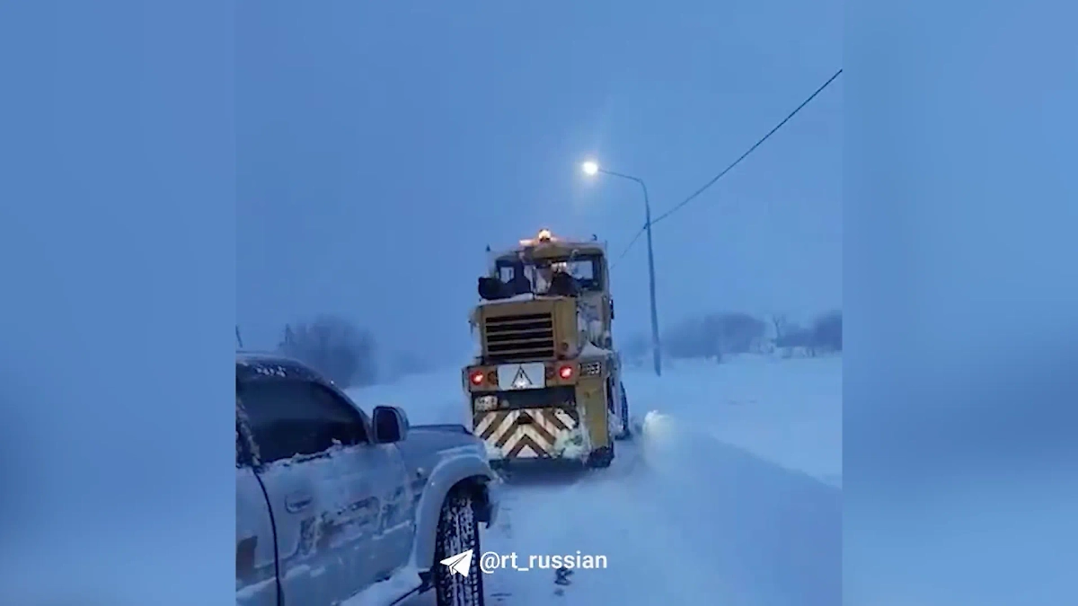 На Сахалине спасатели вызволили автомобилиста из снежного плена. Видео © t.me / "RT на русском"