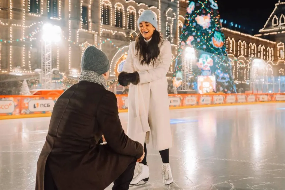 Шейн Принс сделал предложение на ГУМ-катке. Фото © t.me / ХК "Спартак" (Москва)