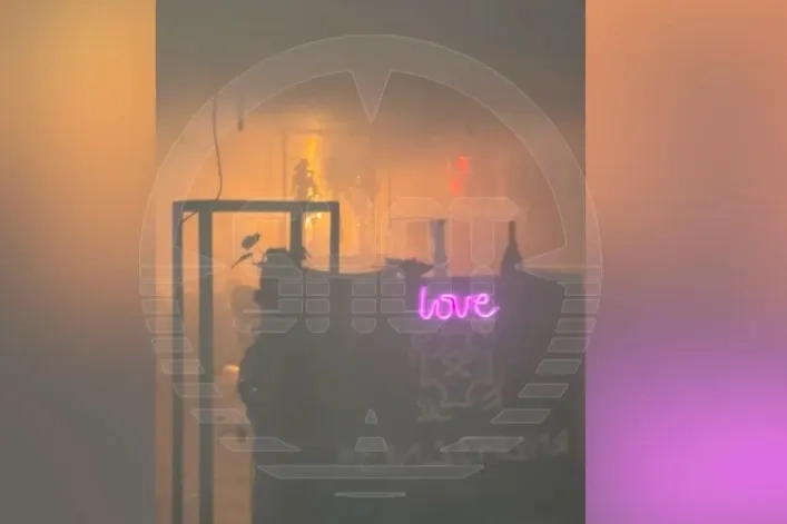 Полыхающий бар "Резиденция" в здании "Известия Hall" в Москве. Видео © t.me / SHOT
