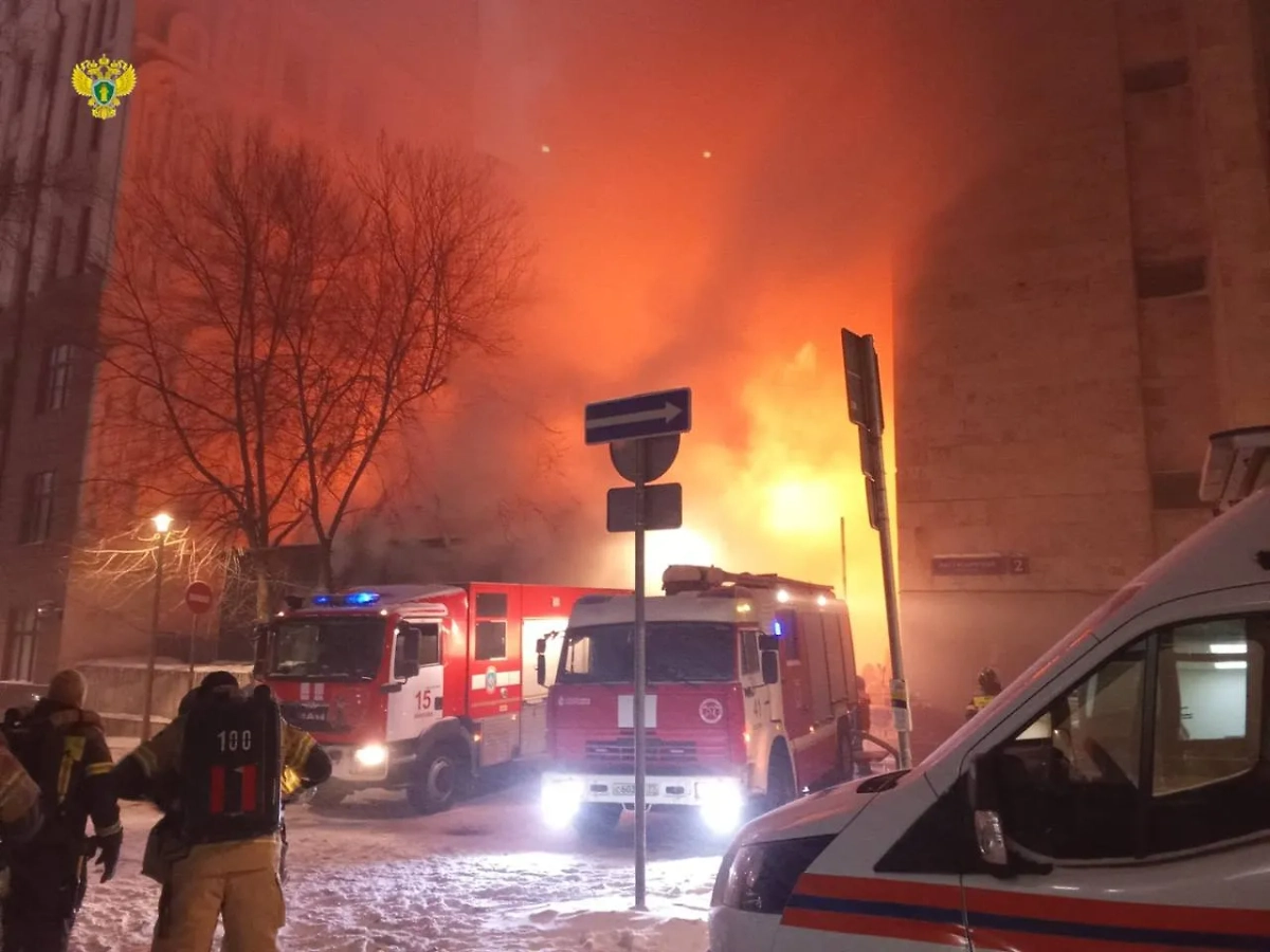 Один человек пострадал при страшном пожаре во дворе здания "Известия Hall"