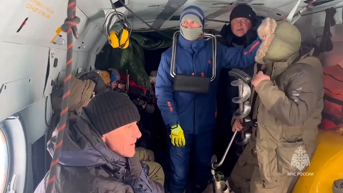 Операция МЧС РФ по спасению рыбаков с оторвавшейся льдины. Видео © Telegram / МЧС России