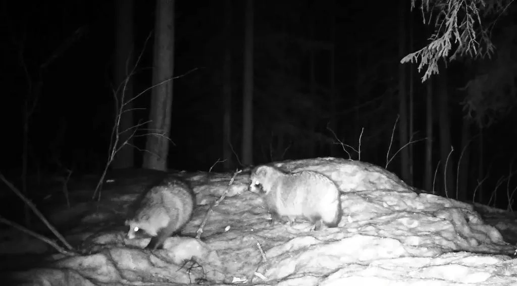 "Факт пробуждения этих пушистых зверьков удалось зафиксировать ночью. И не случайно: енотовидные собаки активны в тёмное время суток", — сообщил специалист.