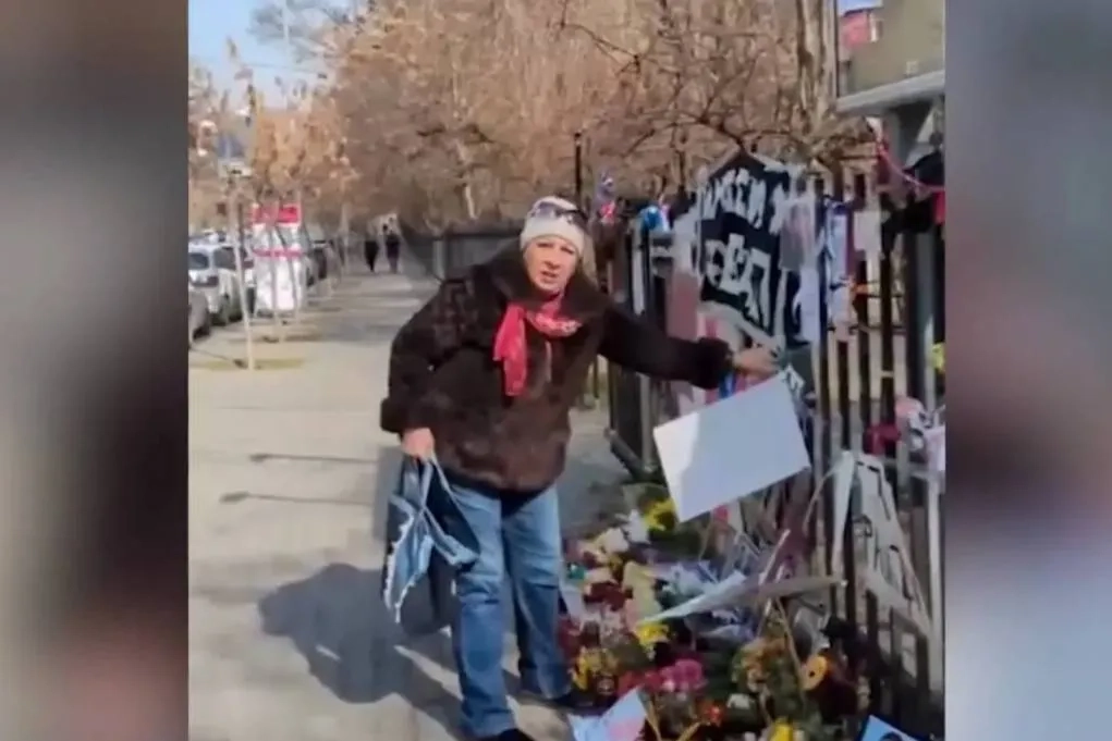 Жительница Еревана разгромила мемориал Навальному* на глазах у его сторонников. Видео © Telegram / Параллель Z