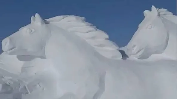 В Якутии скульптор слепил 50-метровый табун лошадей из снега. Видео © Telegram / Борбуев