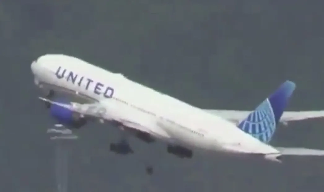 Момент падения колеса со стойки шасси Boeing 777. Видео © X / BNO News