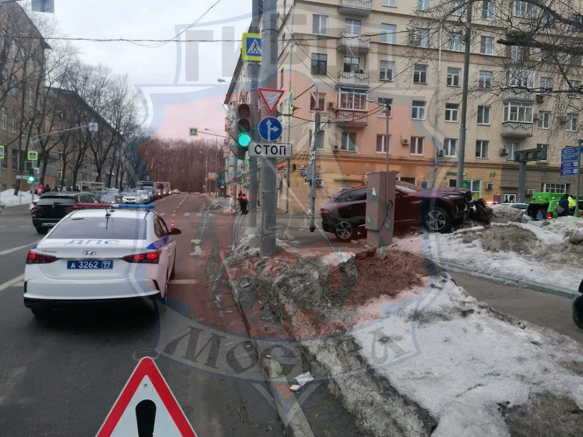 На севере Москвы автомобиль Jaguar выехал на тротуар и сбил пешеходов. Инцидент произошёл на улице Верхняя Масловка, в результате пострадало два человека.