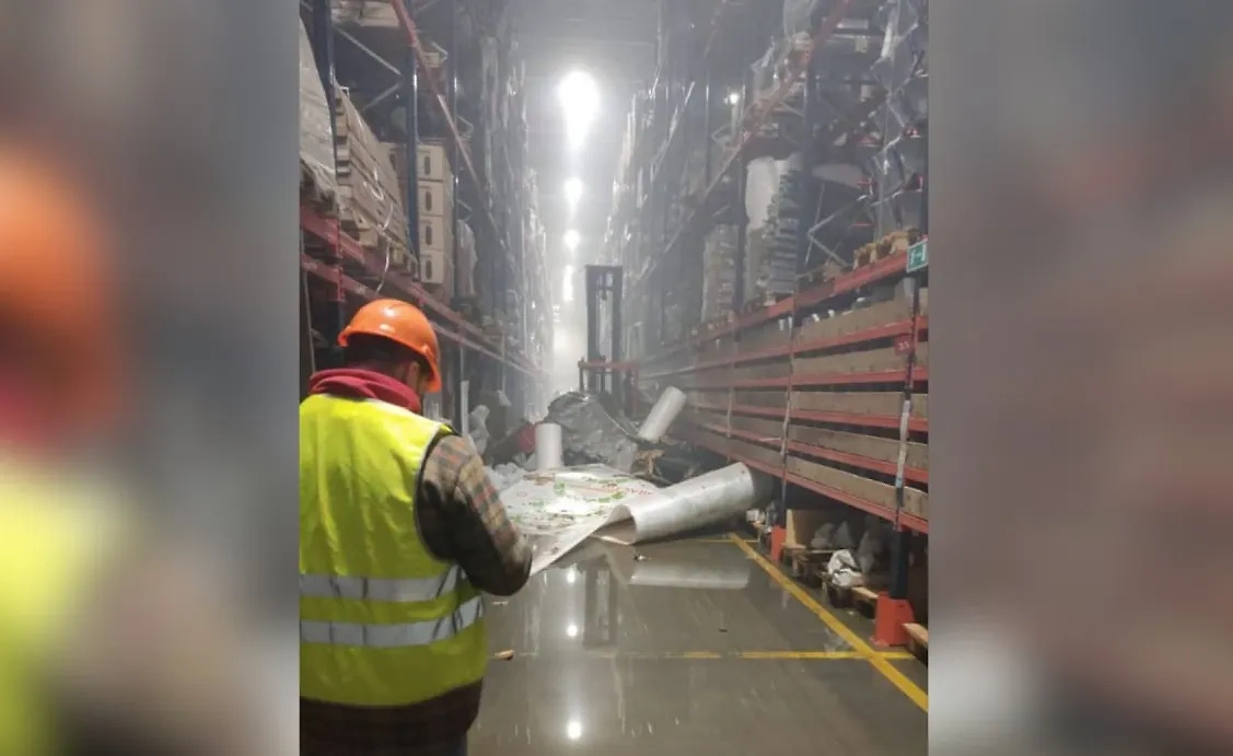 Разрушения на складе в Домодедове после атаки дронов ВСУ. Обложка © Telegram / SHOT