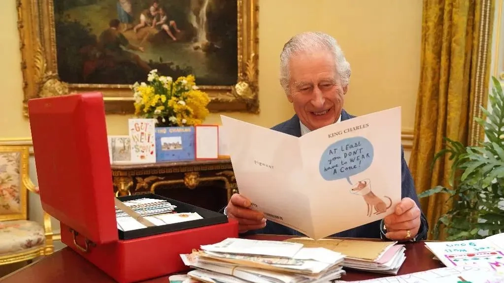 Король Великобритании Карл III читает письма с пожеланиями здоровья в Букингемском дворце. Фото © ТАСС / Zuma