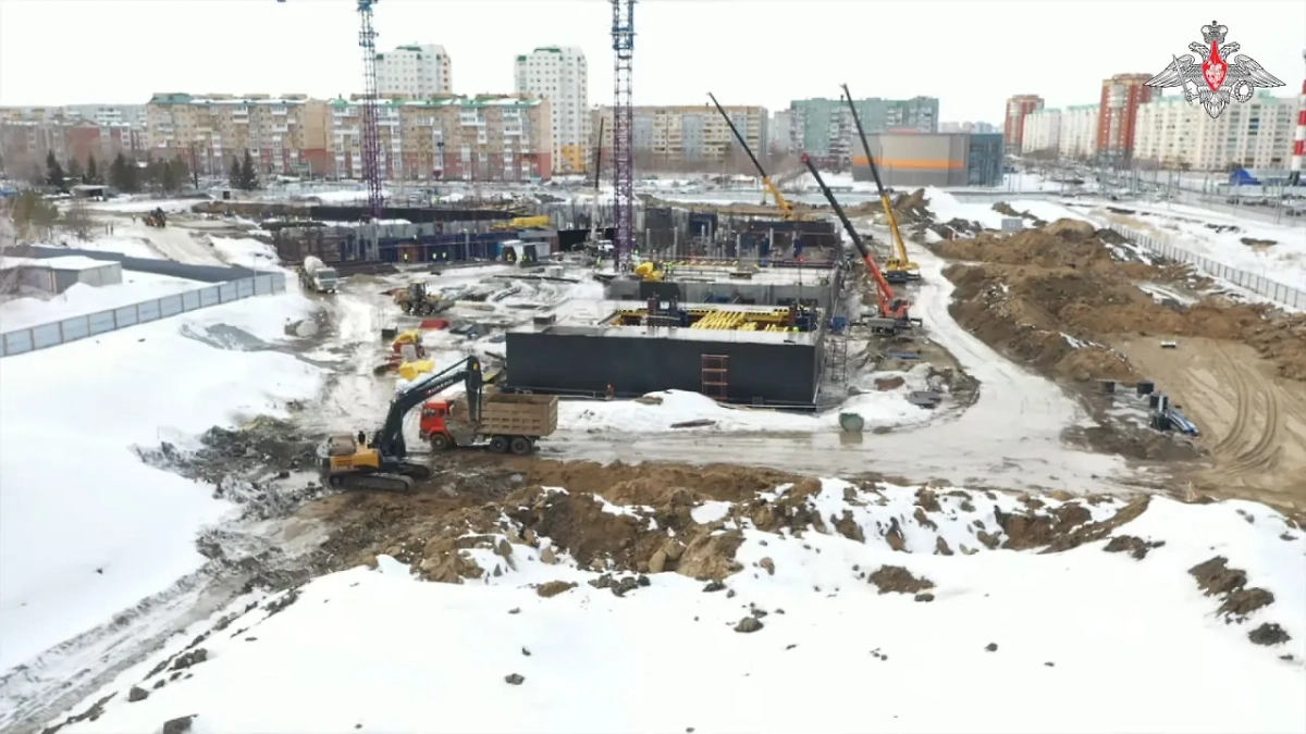 Возведение детского медицинского центра в Омске. Видео © Минобороны РФ