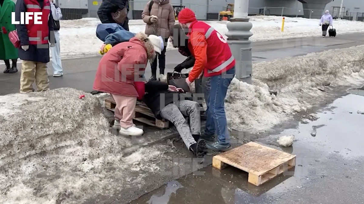 Женщина сломала ногу, поскользнувшись возле мемориала у "Крокус сити холла". Видео © Life.ru
