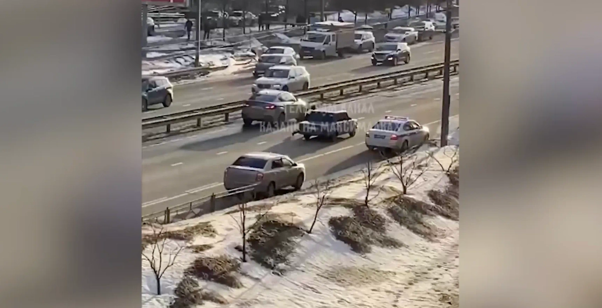 В Казани подросток на "жигулях" протащил инспектора по трассе и сбросил на отбойник. Видео © Telegram / "Казань на максималках"