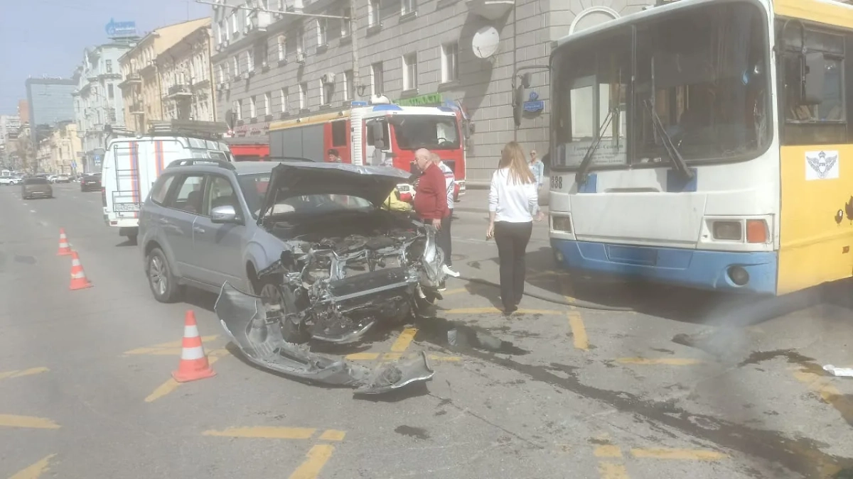 Центр Ростова-на-Дону парализовало после ДТП с тремя машинами и троллейбусом