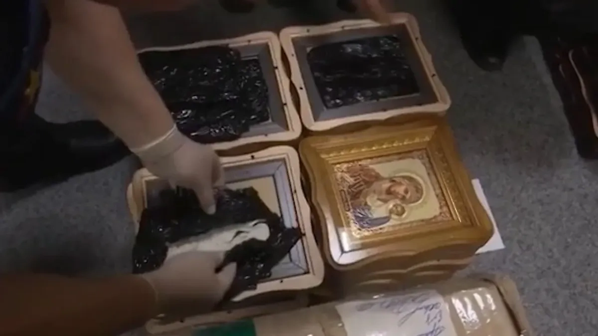 Начинённые гексогеном иконы, перехваченные в Псковской области. Видео © ЦОС ФСБ России