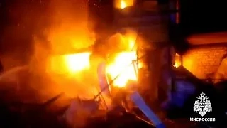 В Татарстане спасатели достали человека из-под завалов после пожара в жилом доме. Видео © Telegram / МЧС России