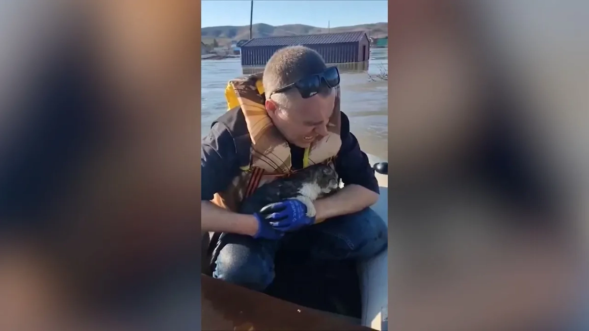 В Сети появилось трогательное видео из Оренбургской области. Местные мужчины услышали жалобный крик кошки в городе Новотроицке. Они подплыли на лодке к затопленному дому, вскрыли крышу и вытащили питомца.