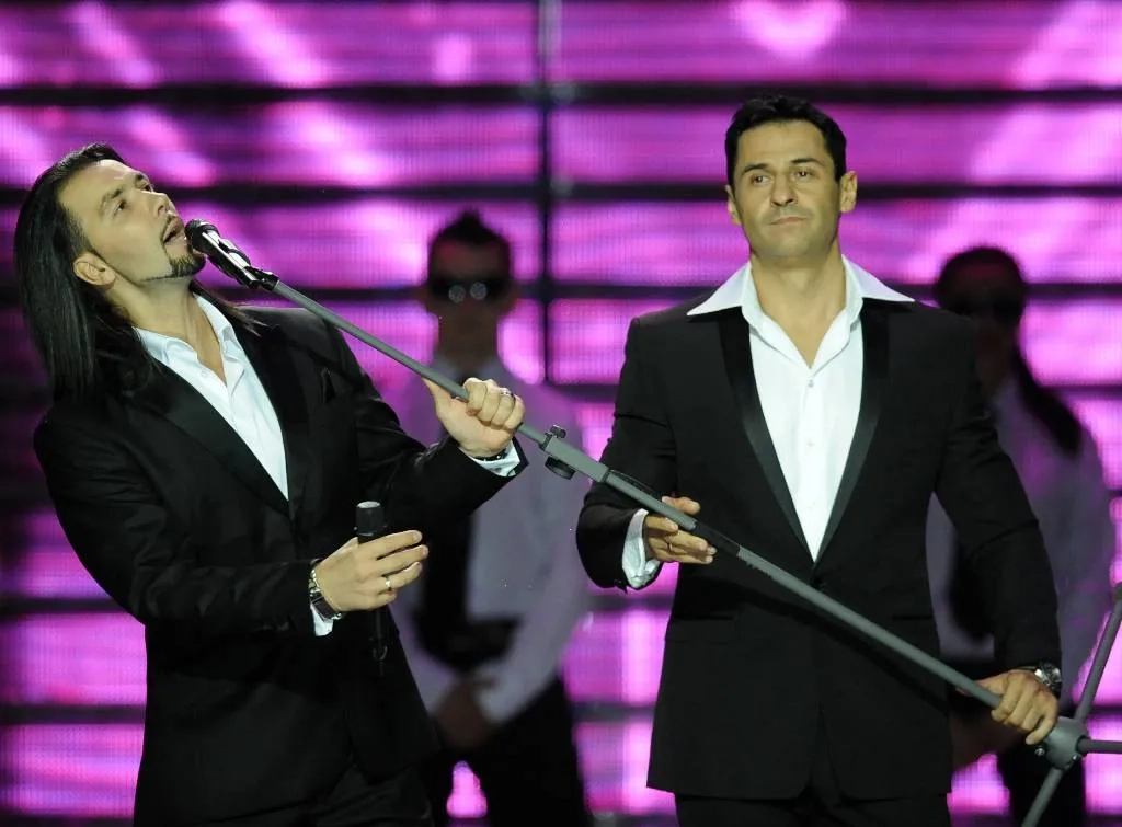 Певцы Стас Костюшкин (справа) и Денис Клявер (слева), 2011 год. Обложка © ИТАР-ТАСС / Артём Коротаев