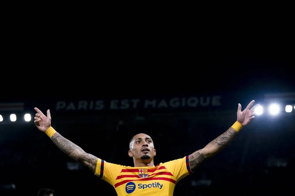 Рафинья, оформивший дубль в ворота ПСЖ. Обложка © X / FC Barcelona