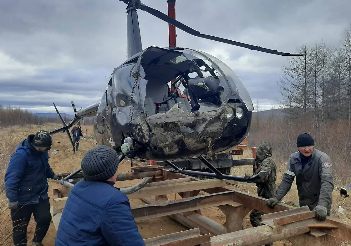 Вертолёт получил повреждения, задев землю при взлёте в Забайкальском крае. Обложка © Telegram / Восточное межрегиональное следственное управление на транспорте СК России