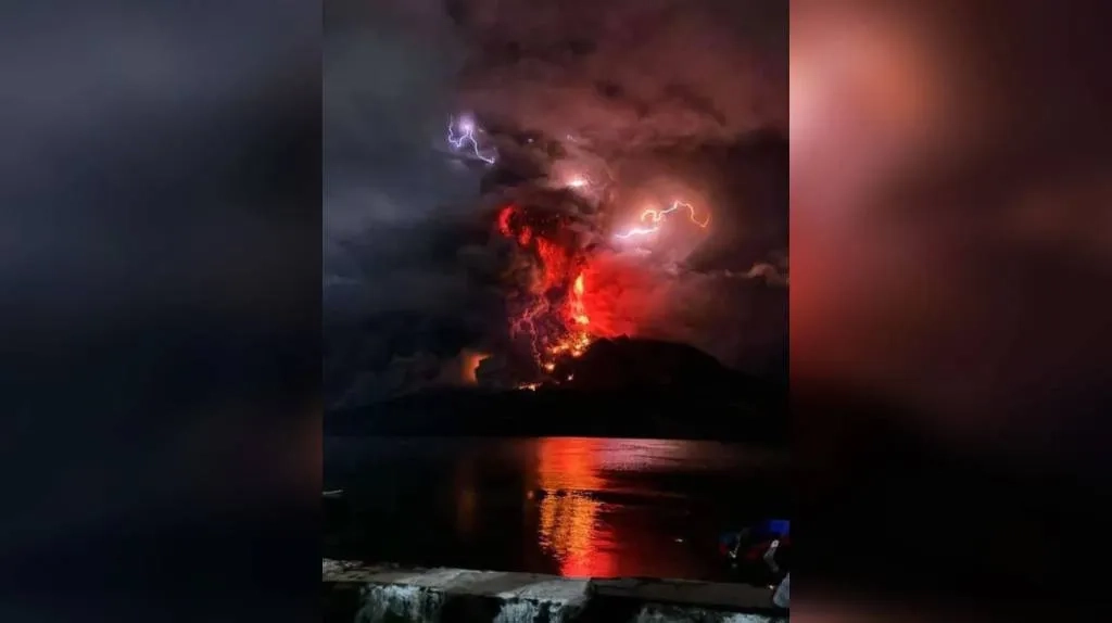 Молния ударила в извергающийся вулкан в Индонезии. Видео © X / TomValentinoo