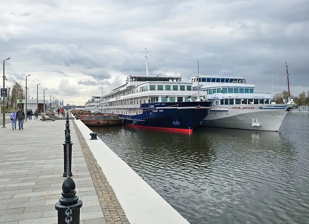Причал с круизными теплоходами у Северного речного вокзала, подготовленного к сезону летней навигации. Обложка © АГН "Москва"