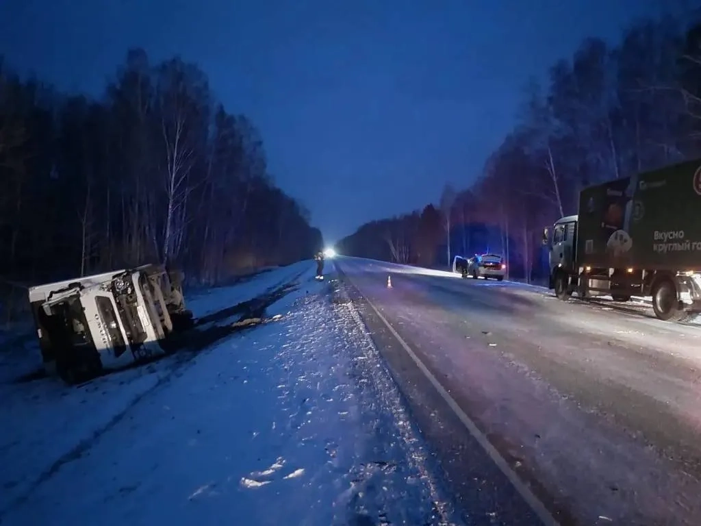 "25.04.2024 в 03:34 в службу 112 Новосибирской области поступило сообщение о ДТП на 125-м километре автомобильной дороги федерального значения Р255 "Сибирь" в Болотнинском районе с участием пассажирской "газели" и грузового автомобиля Howo с прицепом, в результате которого грузовик опрокинулся", — сказано в сообщении.