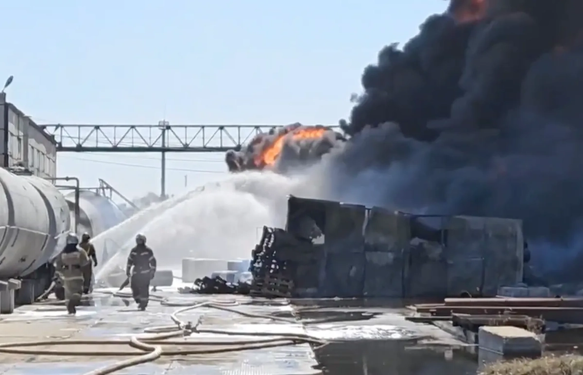 "На Красноярском тракте горят три ёмкости с нефтепродуктами, каждая объёмом 200 литров. На месте работают 58 специалистов и 15 единиц техники. К тушению привлечены два пожарных поезда", — говорится в сообщении.