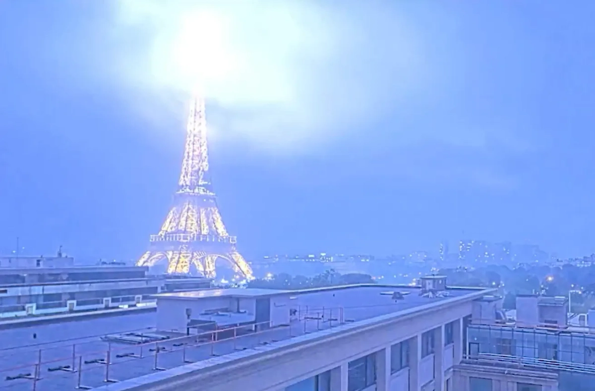Камера засняла, как молния эффектно ударила по Эйфелевой башне. Видео © X / Vision-Environnement