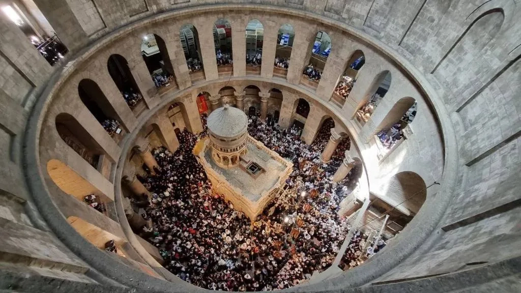 Благодатный огонь сошёл в храме Гроба Господня в Иерусалиме