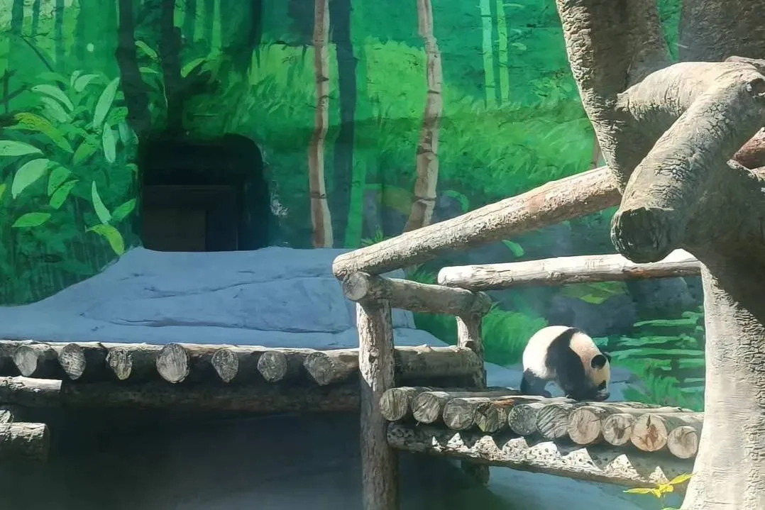 Панда Катюша опять вышла в уличный вольер, но и в этот раз ненадолго