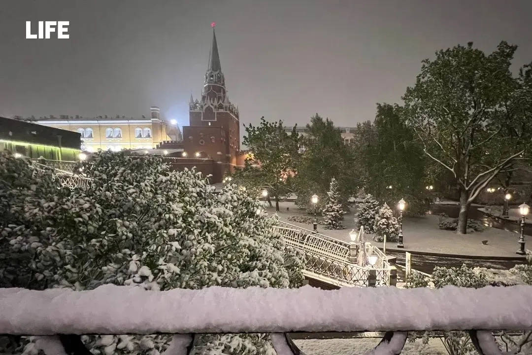 Накрывший Москву майский снегопад замёл Красную площадь и окутал хлопьями цветы