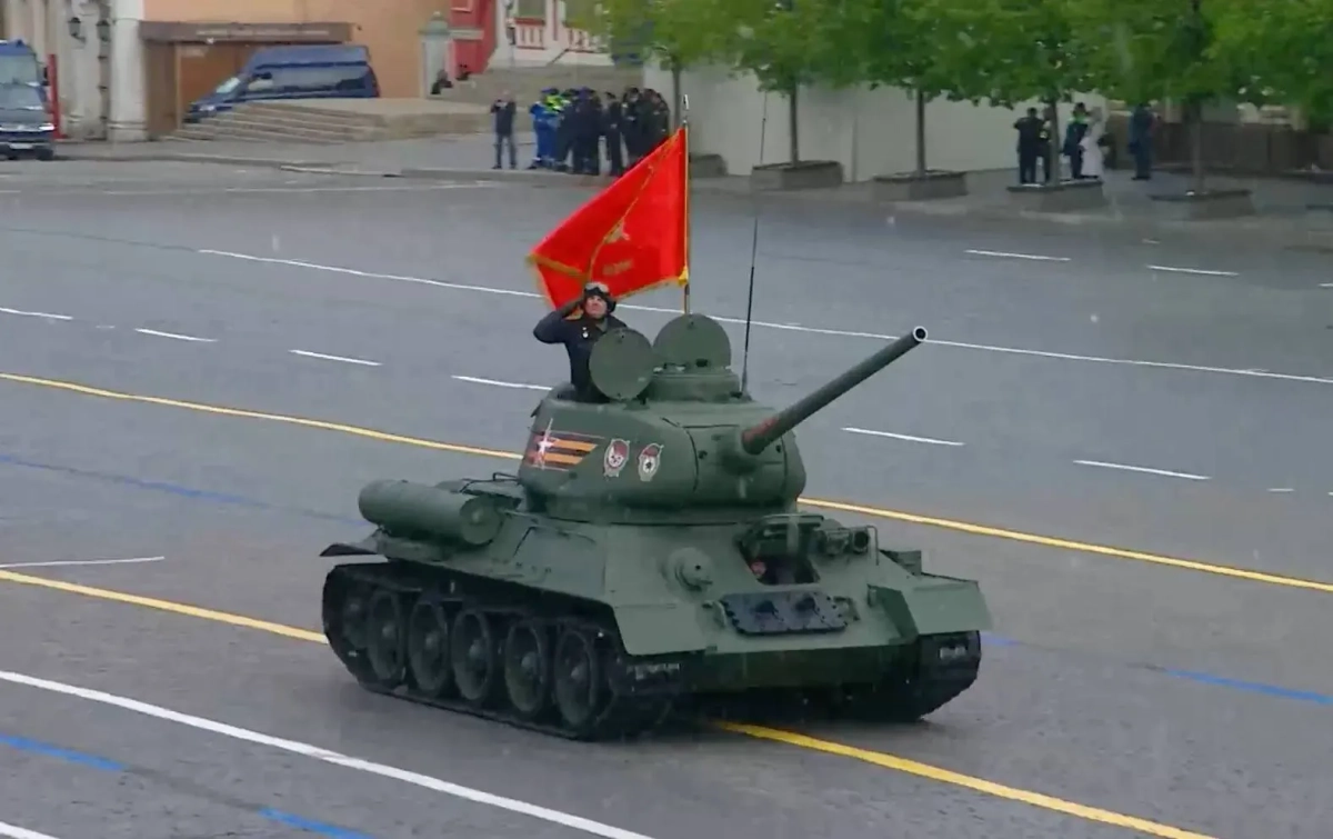 По Красной площади в Москве, где состоялся Парад Победы, прошли парадные расчёты военной техники. Первым на брусчатку выехал танк Т-34, ставший одним из символов Великой Отечественной войны.