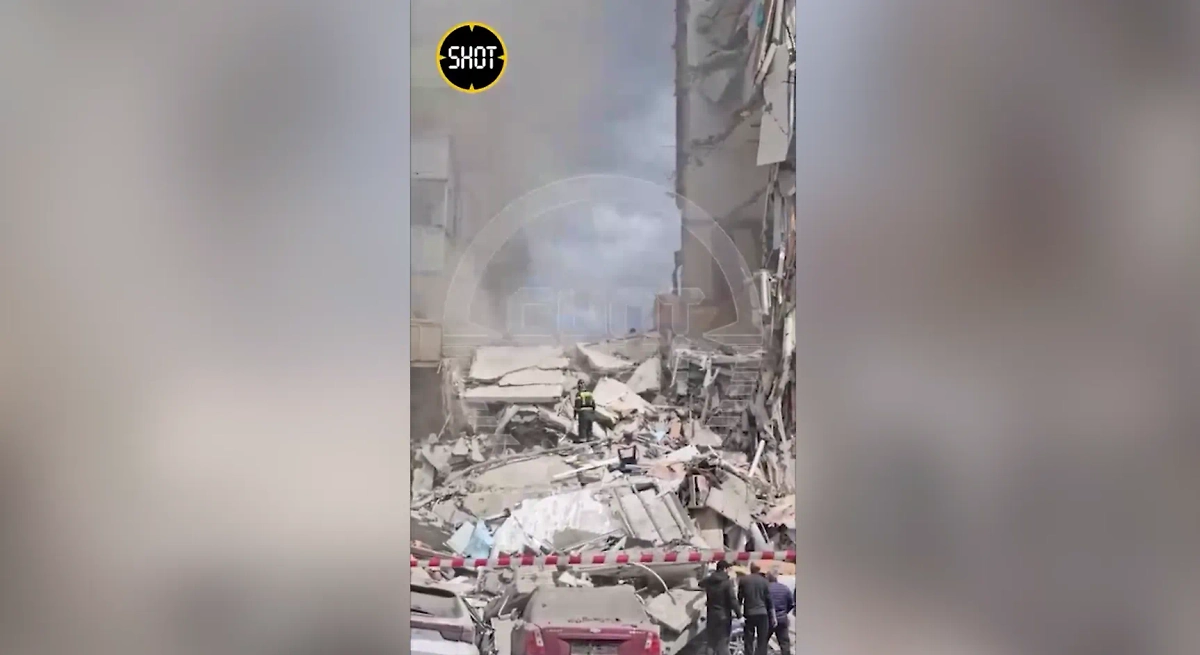 Подъезд жилой многоэтажки рухнул на улице Щорса в Белгороде. Видео © SHOT