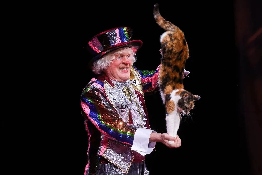 Дрессировщик Юрий Куклачёв во время бенефиса "Жемчужная нить жизни" по случаю своего 75-летия в концертном зале "Вегас сити холл". Фото © ТАСС / Сергей Карпухин
