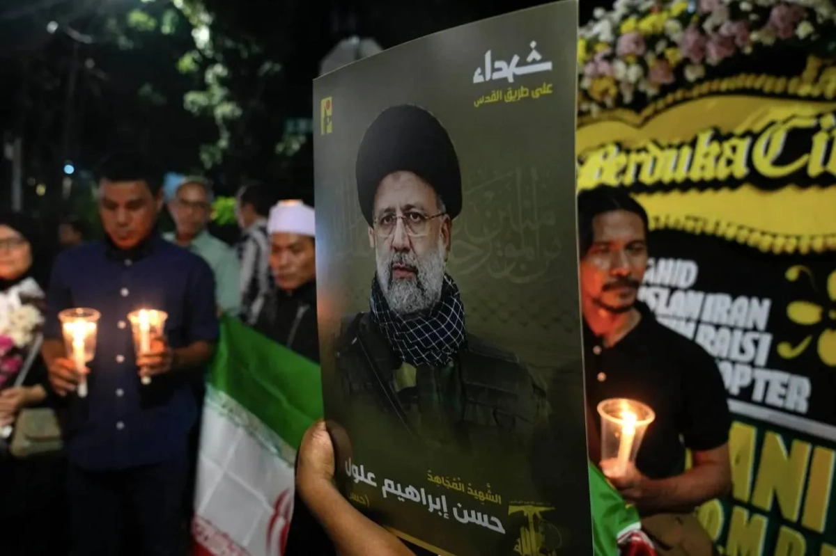 Акция у посольства Ирана в Джакарте в память о погибшем президенте Ирана Эбрахиме Раиси. Обложка © ТАСС / AP