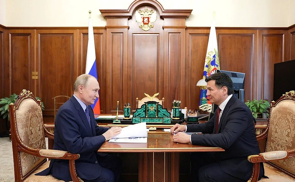 Президент проводит встречу с главой Калмыкии Хасиковым. Видео © Telegram / Кремль. Новости