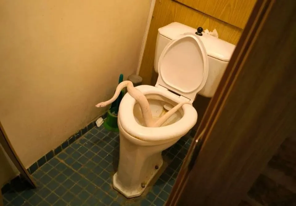 Огромный удав вылез из унитаза жительницы Москвы, причём для него это, как оказалось, не впервой. По данным SHOT, белая рептилия поставила на уши дом на Енисейской улице. Хозяйка одной из квартир зашла в туалет и заметила, как нечто извивается под слоем монтажной пены. Видимо, не придав этому значения, женщина ушла. Через несколько минут она увидела жуткую картину, запечатлённую на фото ниже.