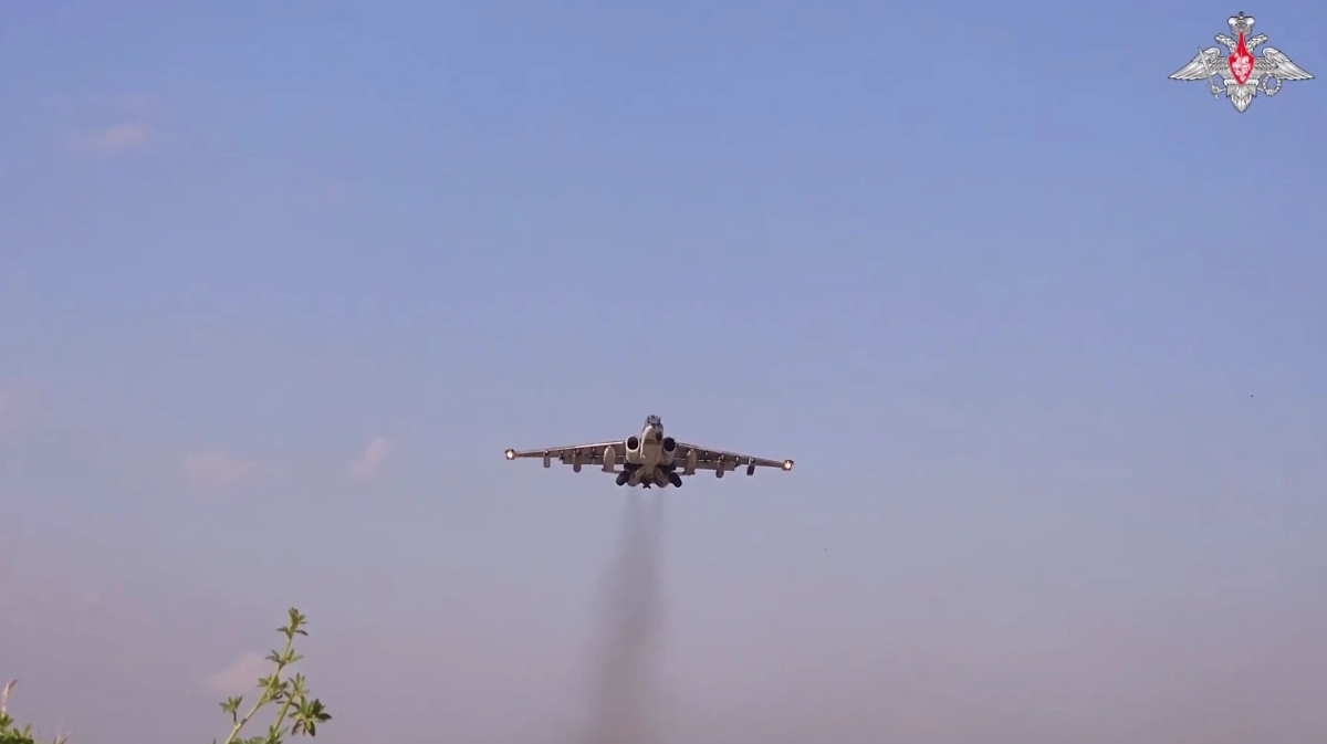 Минобороны показало, как Су-25 ударили неуправляемыми авиационными ракетами по ВСУ