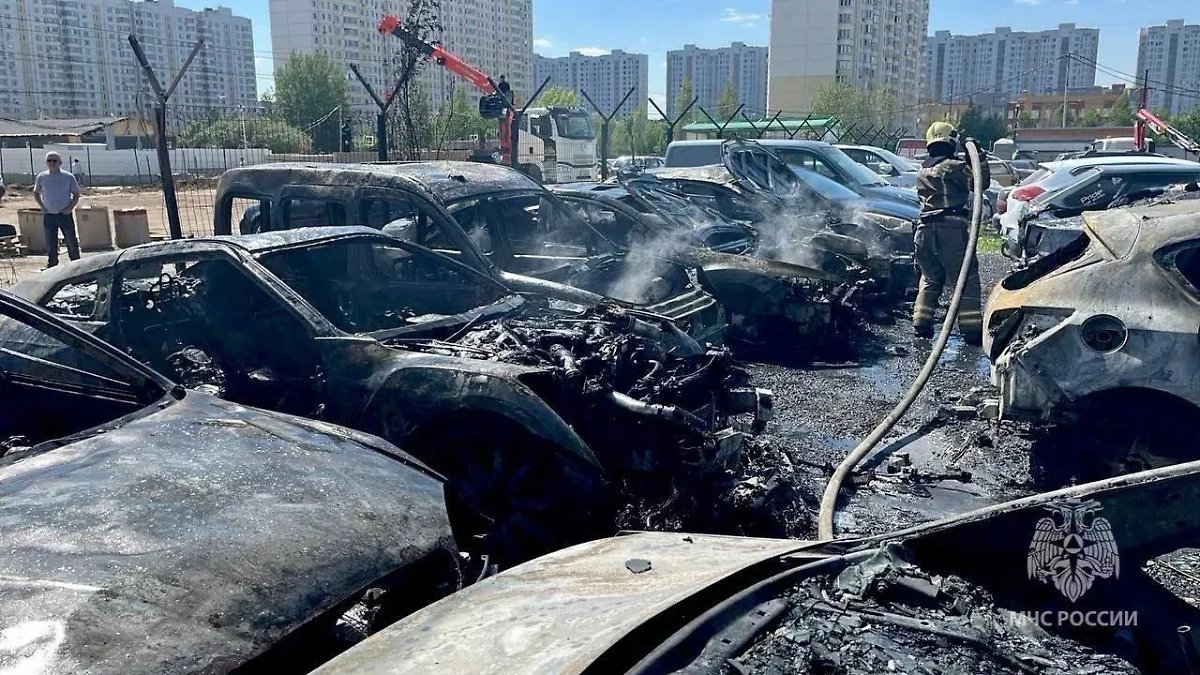 В подмосковных Мытищах на штрафстоянке сгорели девять легковушек. Об этом сообщает пресс-служба МЧС России.