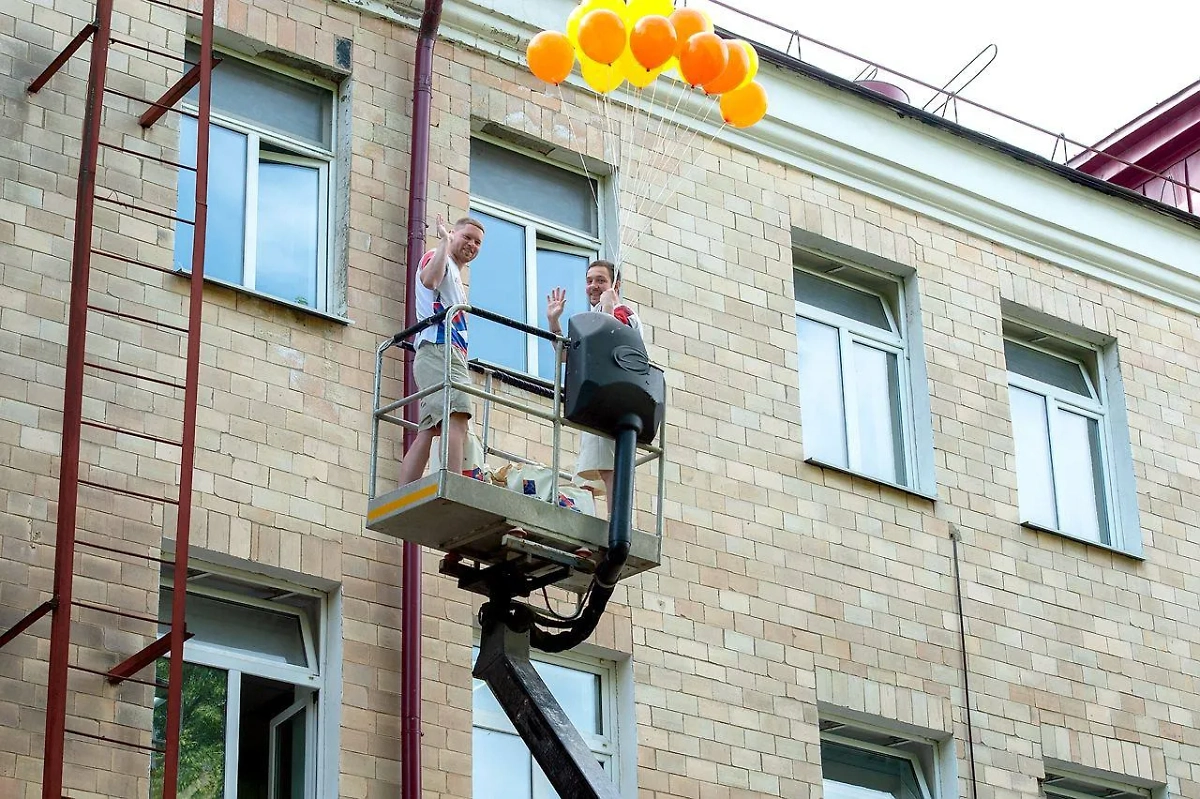 В Международный день защиты детей, 1 июня, юным пациентам Подольской областной клинической больницы вручили подарки прямо через окно. Воздушные шарики, развивающие игры и книги волонтёры доставили с автовышки. Видео с места опубликовал SHOT.