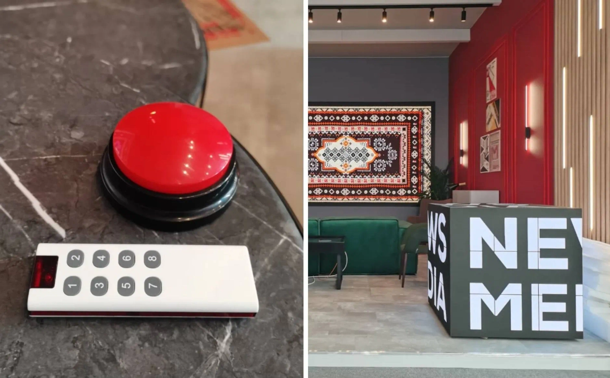 Грозная красная кнопка на стенде News Media на ПМЭФ. Фото © Life.ru / Андрей Тишин