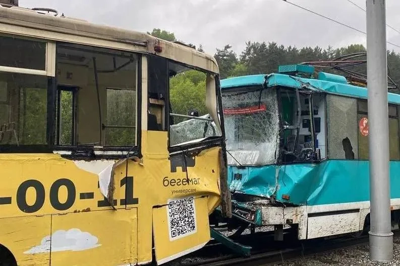 Набитый пассажирами трамвай без тормозов столкнулся с другим в Кемерове