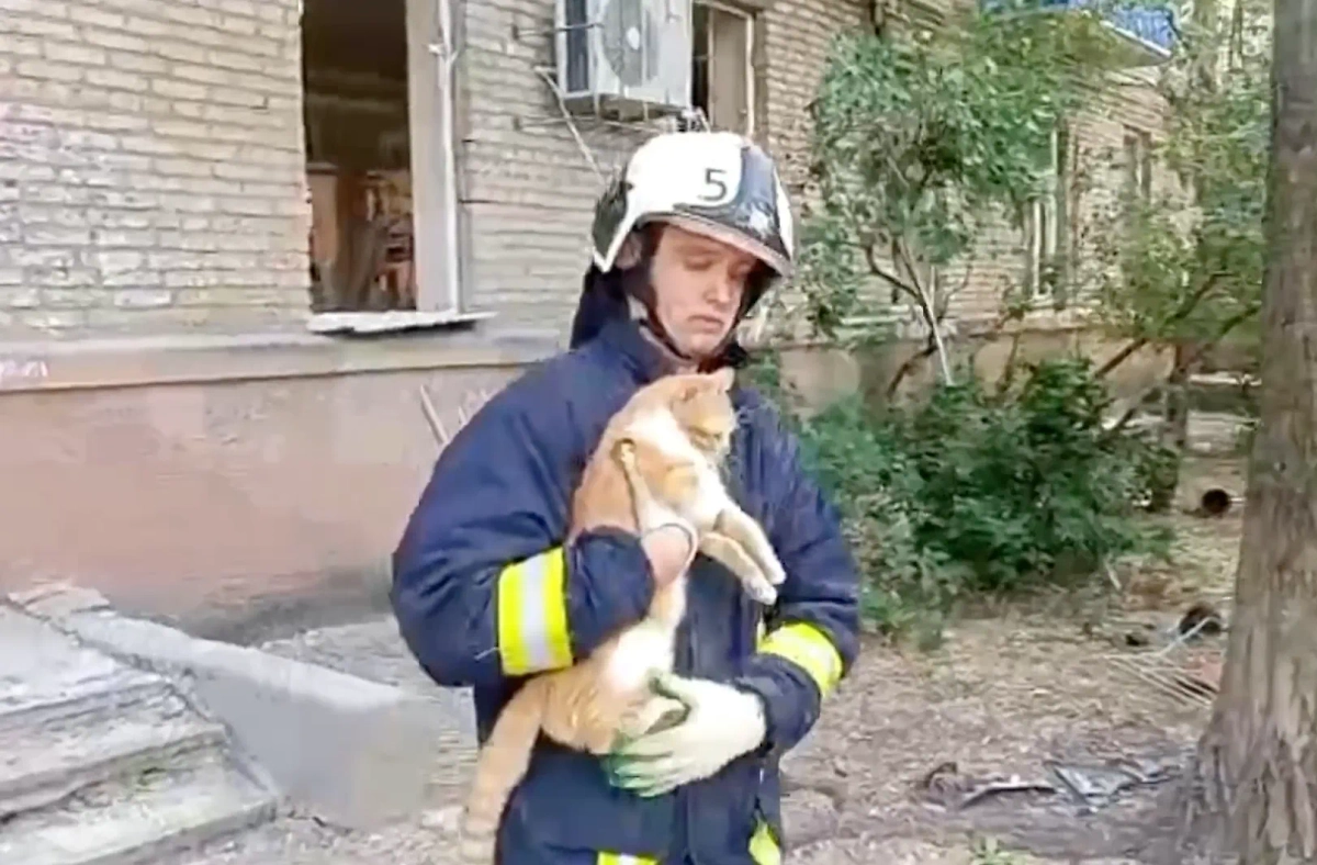 Спасатели достали из-под завалов дома в Луганске кота и передали его хозяину