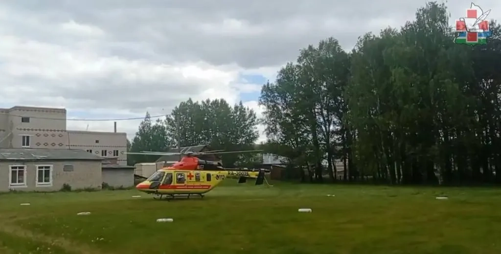 Спасённых в лесу в Свердловской области детей доставляют в Тюмень на вертолёте. Видео © Telegram / Здоровье уральцев | Минздрав Свердловской области